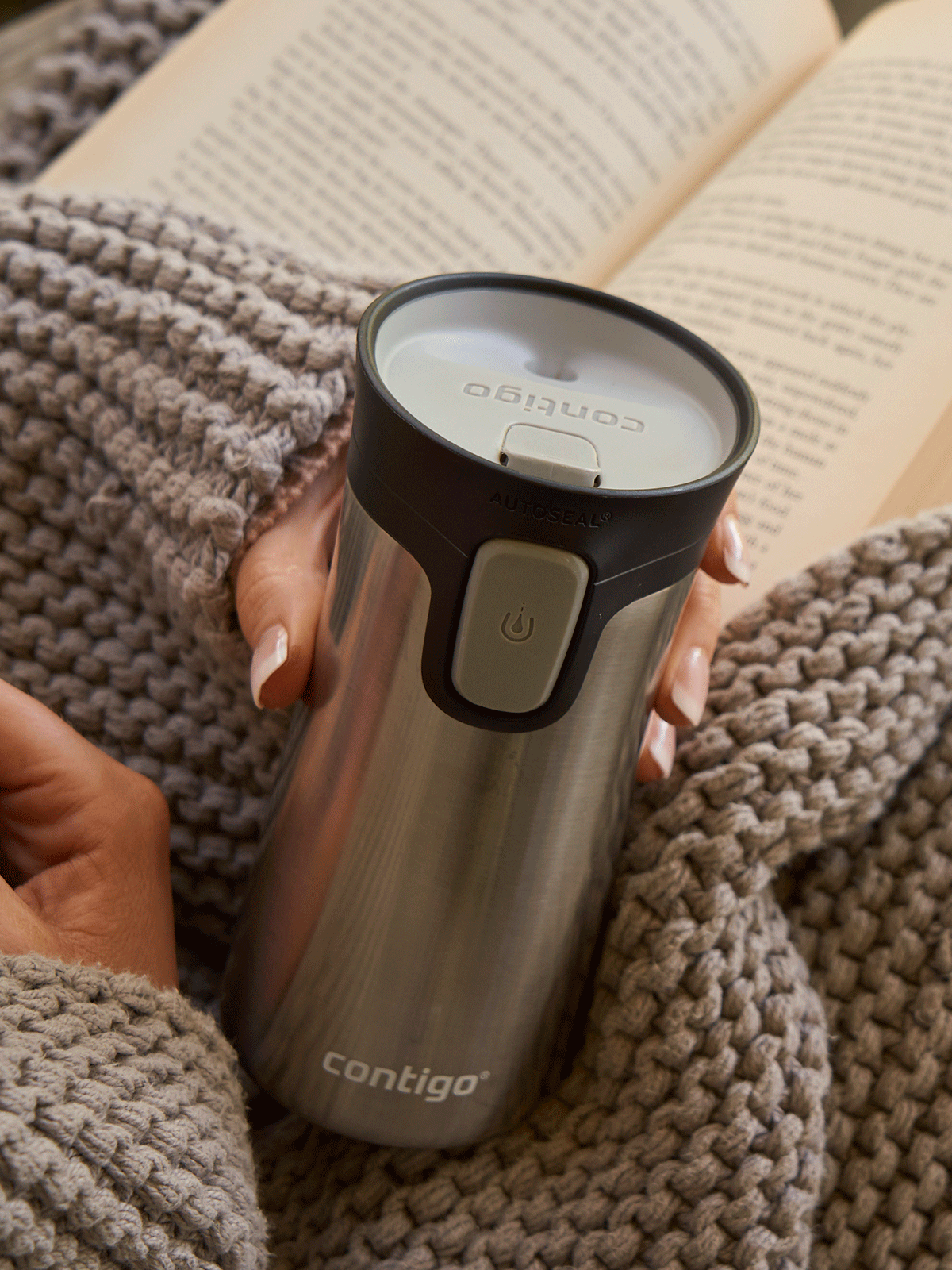 Contigo Pinnacle thermal coffee mugs have two steel walls with ThermaLock vacuum insulation between them. In combination with the 100% airtight cap, this means that a hot drink can be enjoyed for up to 3 hours and cool water or juice for up to 10 hours.
