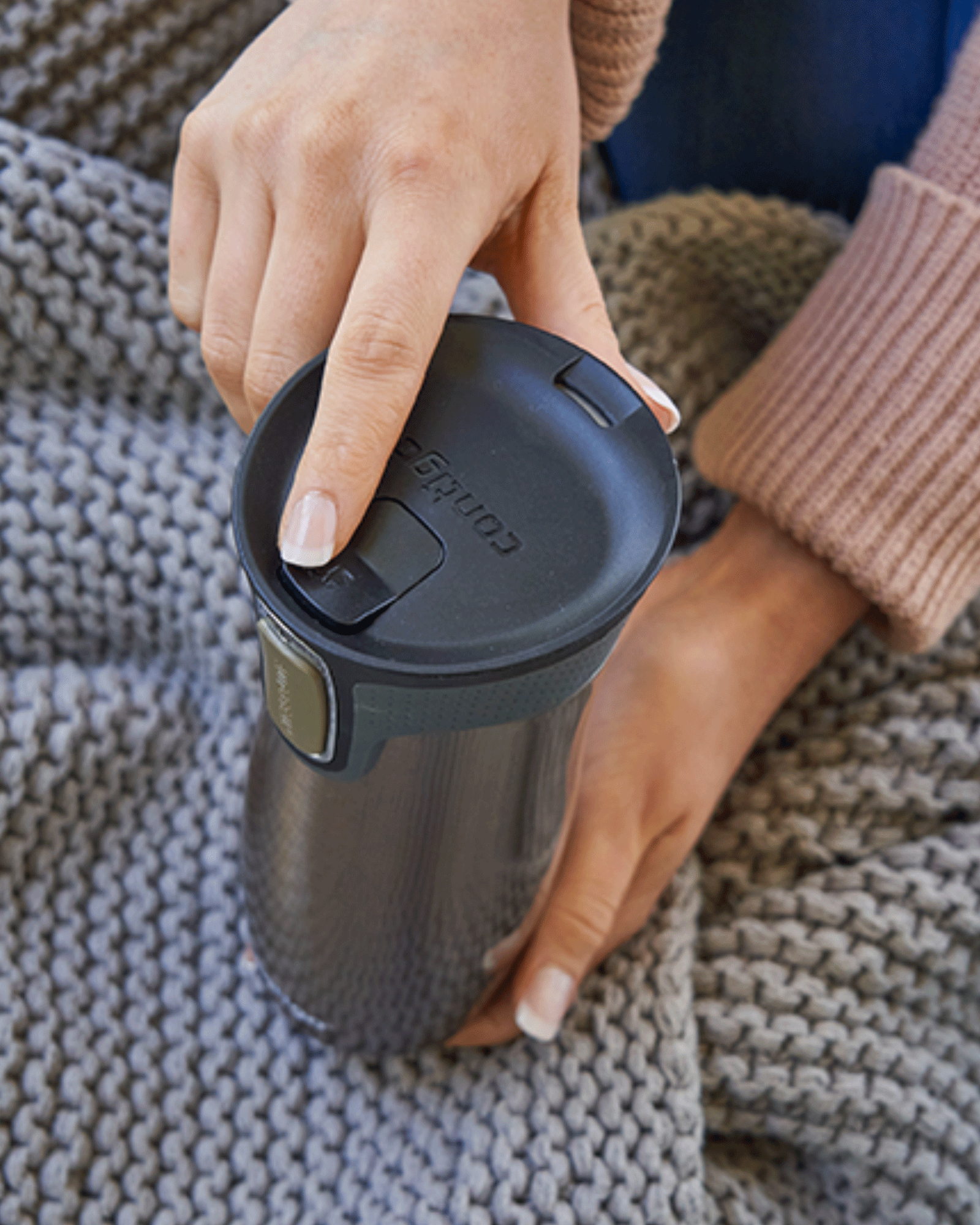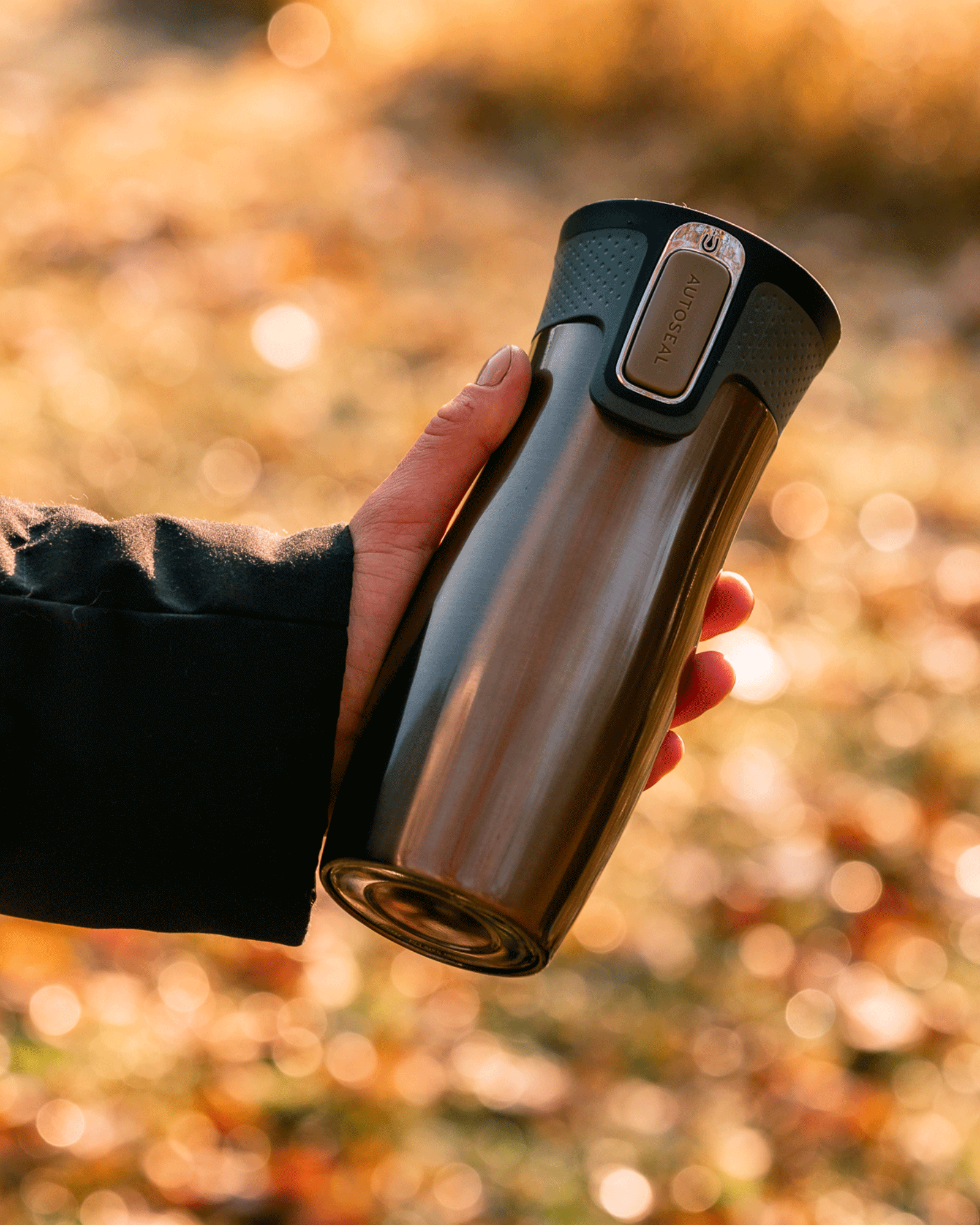 You operate it with one hand. You press - you drink. You let go - you close it. Thanks to AUTOSEAL technology, the cup is 100% leak-proof. In addition, the new cap has been equipped with a lock to prevent accidental pressing when you hold the cup in your bag.