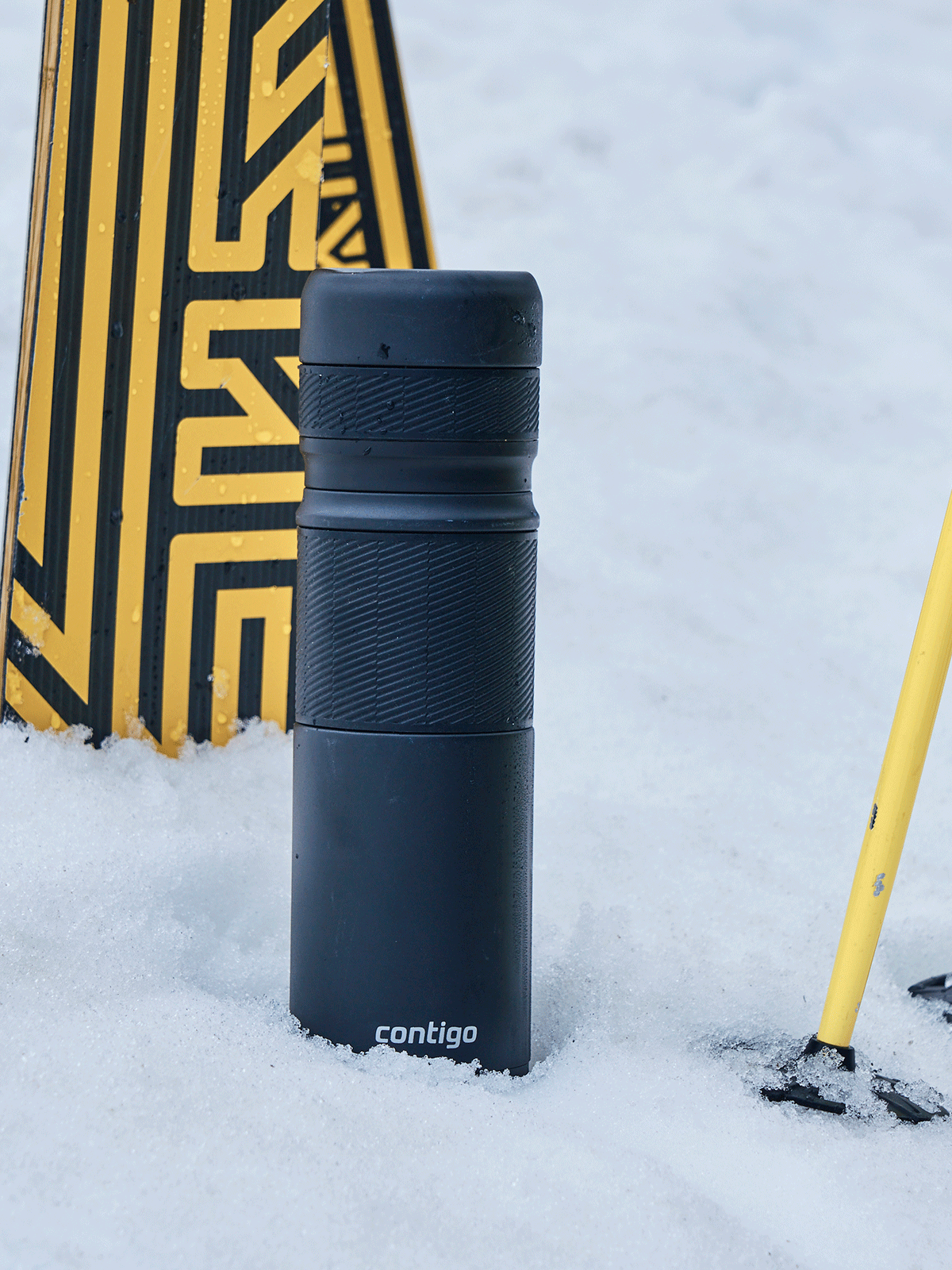 Ein bewährter Begleiter für stundenlange Wanderungen. Die 740 ml Thermoskanne von Contigo wird Ihr perfekter Begleiter sein!