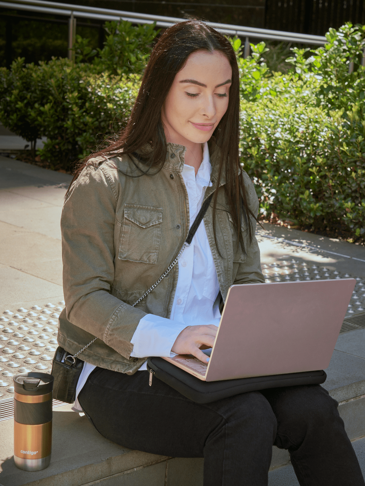 Zum ersten Mal in der Serie Byron 2.0 von Contigo haben wir die Silikonhülle auf der Oberseite des Bechers in Angriff genommen. Wir haben sie mit unregelmäßigen, konvexen Linien in verschiedenen Größen versehen. Dank dieser Linien rutscht der Contigo Byron Thermobecher nicht aus der Hand, selbst wenn die Hände nass sind.
