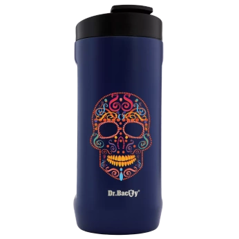 Dr.Bacty Notus Becher und Dosenabdeckung farbiger Totenkopf - marineblau