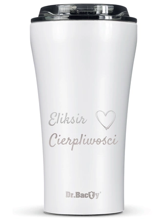 Dr.Bacty Apollo 2.0 Thermo-Kaffeebecher - Elixier der Geduld - 360 ml - Weiß glänzend